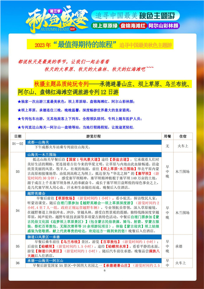 2023年8月16日,綿陽中旅行假日旅行舉行2023年秋攝三絕壩上阿爾山紅海灘空調(diào)旅游專列12日游推薦會,主持人熱情洋溢的到場的嘉賓們介紹了追尋中國美秋色主題游“秋色盛宴”第三季純玩空調(diào)專列12日游的線路詳細(xì)內(nèi)容。